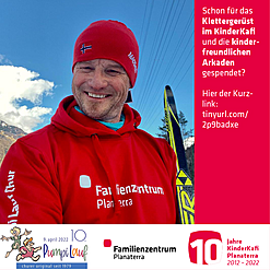 Unser KinderKafi hat dieses Jahr sein 10-jähriges Jubiläum. Die Spendengelder, die Schampi • Hanspeter Brigger für uns erläuft, möchten wir daher ins KinderKafi und in die Arkaden investieren. Schampi bewegt sich, und bewegen sollen sich auch die kleinen Gäste vom KinderKafi: Wir planen ein Klettergerüst fürs Kafi und möchten den vom Bauamt bewilligten Teil unseres Arkaden-Projekts von 2019 noch mal in Angriff nehmen; mit einem bemalten Boden, der zum hüpfen und hopsen anregt, und ganz generell aufgefrischten Arkaden.